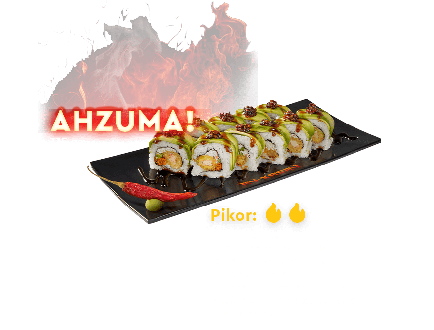 ¿Eres fanático de las sensaciones extremas y nunca le dices que no a un reto? ¿Siempre le pones más y más chile a tus comidas favoritas aunque termines soltando una lagrimita? ¡Entonces nuestros nuevos rollos ultra-picantes ‘AY-KARAY!’ son para ti! Queremos verte sacando tu lado más kamikaze con este sushi con chile del que sí pika, un picante realmente intenso que no podrás dejar de disfrutar aunque ya estés a moko tendido. Con estos nuevos rollos que tienen lo mejor del mundo japo y lo mexicano, ¡te vas a quedar bien pikado!